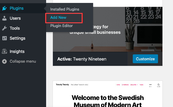 2. After logging in, click on ‘Plugins > ‘Add New.