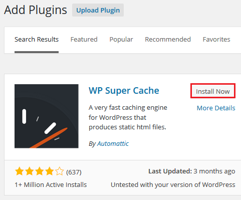 3. Search for WP Super Cache in the upper right corner of the screen.